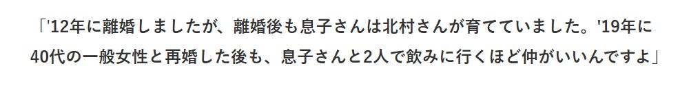 では、現在の家族構成はどのようになっているのでしょうか。再婚相手との間に子どもが誕生したという報道はなく、子供は前妻との間に生まれた息子・北村将清さん(現在はダンサーとして活動中)が一人という形です。再婚相手との同居や家族の距離感についても公式な発表はありませんが、噂レベルでは「息子さんが実家を出て独立している」「新しい家族と良好な関係を築いている」といった情報も出ています。親子で食事に行くエピソードや、父と息子で仕事の話をするという話題も、時折インタビューなどで語られていますよ。